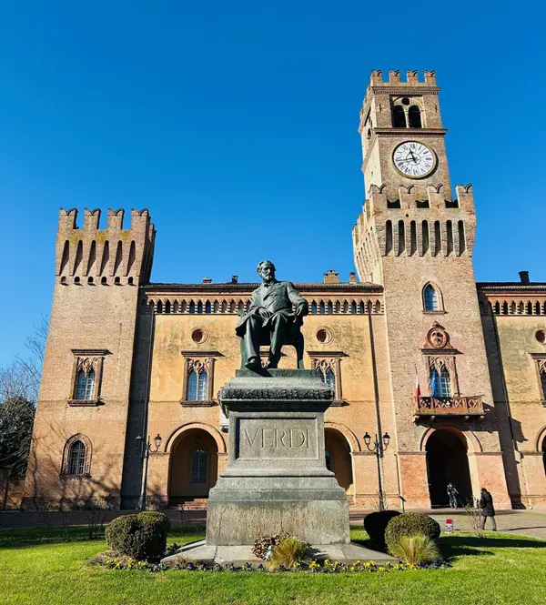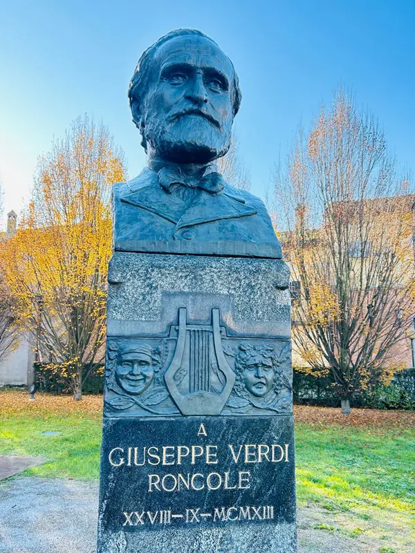 In Roncole Verdi, waar Verdi op 10 oktober 1813 werd geboren, staat een mooie buste van de musicus. Ook even verderop, in Busseto, troont hij trots in brons, op het naar hem vernoemde piazza, met het gemeentehuis, het Teatro Verdi en Casa Barezzi, het huis van zijn mentor Antonio Barezzi, waar Verdi in zijn jonge jaren verbleef, studeerde en musiceerde. Later trouwde hij met de dochter des huizes, Margherita Barezzi.