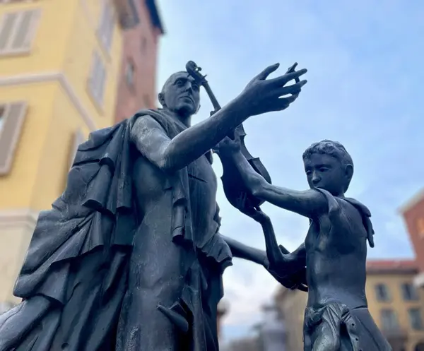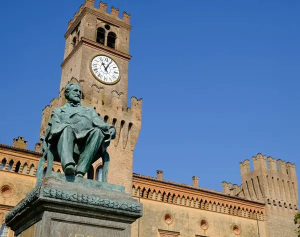 Even verderop, op het Piazza Cittadella, vind je een bronzen beeld van de componist, gemaakt door Vito Tongiani.