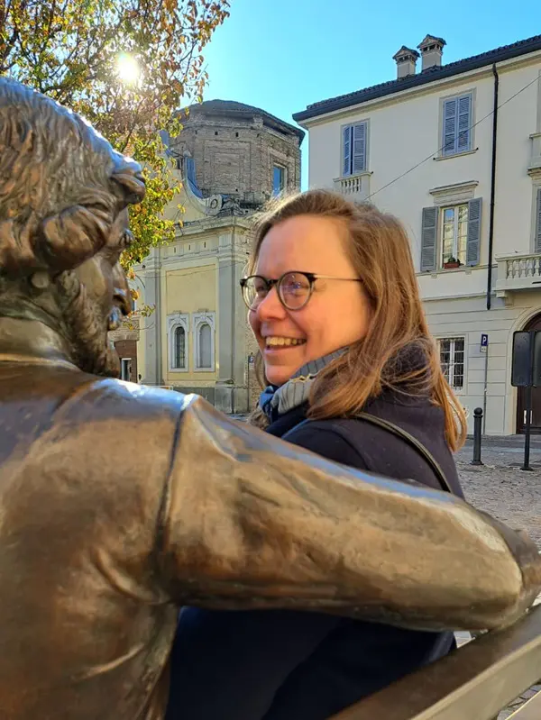 We beginnen met een van de grootste componisten die Italië gekend heeft: Giuseppe Verdi. Je komt hem allereerst tegen op het Piazzale San Francesco, waar hij sinds maart 2018 op een bankje zit. Het beeld van de beroemde componist werd geplaatst ter ere van zijn tweehonderdste geboortedag, als cadeau aan de gemeente Parma.