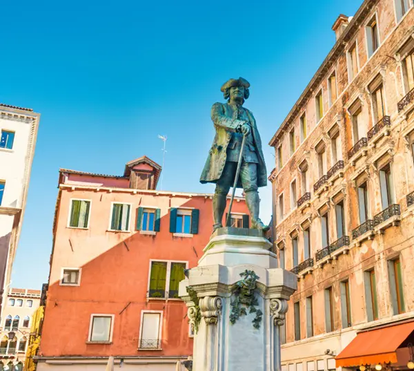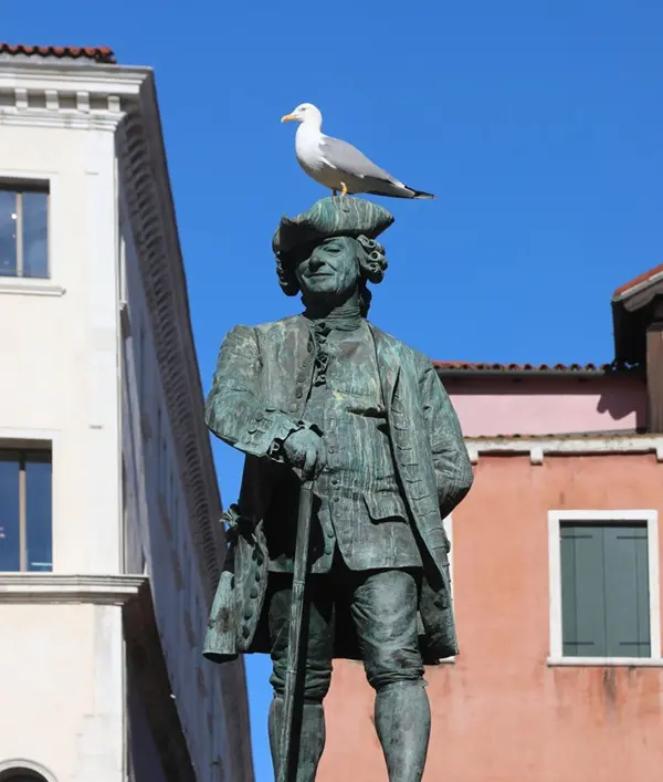 Ook deze Venetiaanse toneelschrijver en librettist is in brons vereeuwigd, op het Campo San Bortolomio in Venetië, in de buurt van zijn voormalige huis, dat nu een museum is waarin je meer te weten komt over deze briljante auteur.