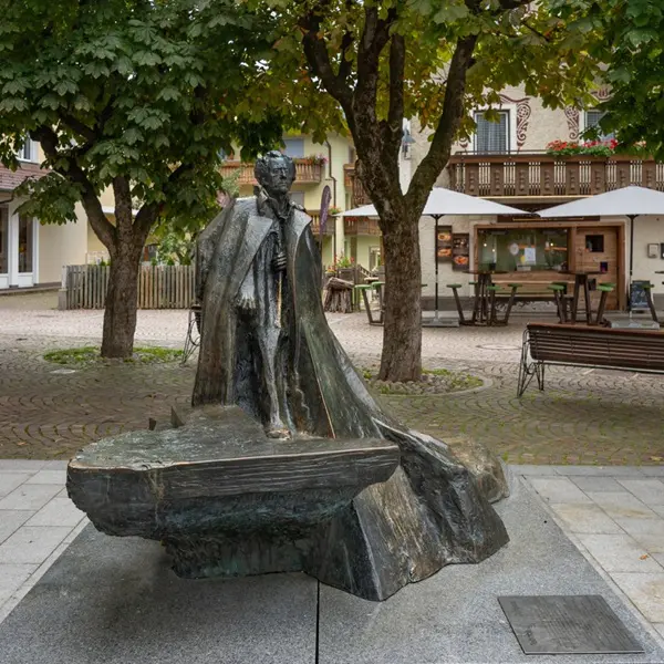 Aan het Piazza Municipio in Dobbiaco ontmoet je Gustav Mahler, die hier in juli 1897 voor het eerst kwam, toen hij een fietstocht maakte door Val Pusteria. In de daaropvolgende jaren keerde hij regelmatig terug om bij te komen van het werk aan zijn symfonieën en nieuwe inspiratie op te doen.