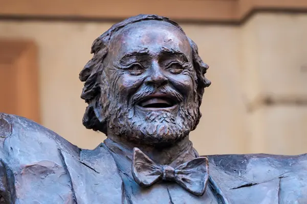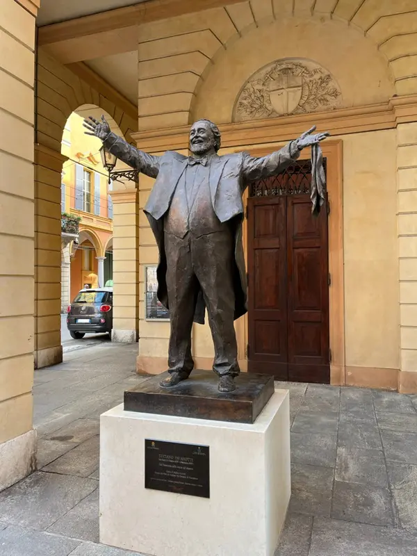 Het is maar een kort ritje naar het volgende beeld, dat van Luciano Pavarotti in Modena, bij het aan hem opgedragen Teatro Comunale. Het werk is van de hand van kunstenaar Stefano Pierotti en werd tien jaar na de dood van de tenor onthuld.
