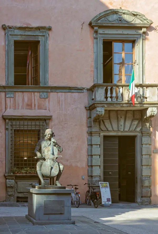Lucca kent nog een ander standbeeld van een musicus, dat van Luigi Boccherini (1743-1805), cellist en componist. Hij staat voor het conservatorium in Lucca, dat naar hem is vernoemd.