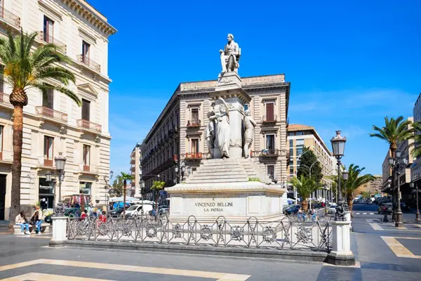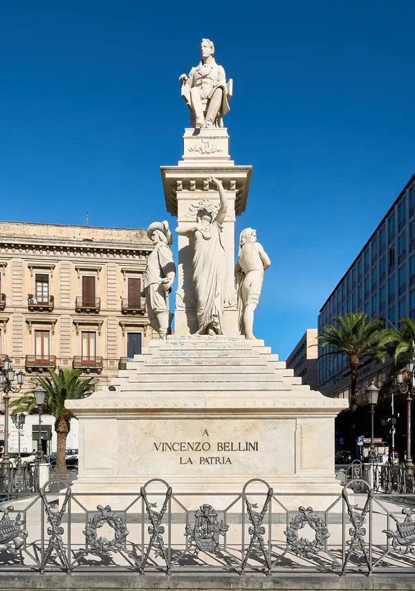 Op het Piazza Stesicoro staat een standbeeld van de beroemde componist. Het marmeren monument werd gemaakt door Giulio Monteverde en ingewijd op 21 september 1882, maar tot vlak voor de onthulling wist men nog niet waar het beeld moest komen.
