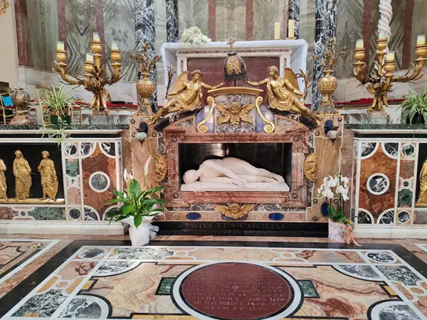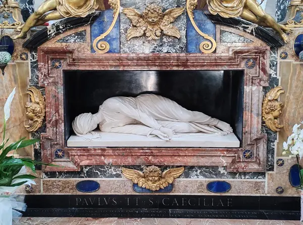 In 821 liet de paus haar lichaam overbrengen naar Santa Cecilia in Trastevere. Onder het hoofdaltaar van deze basiliek bewonder je een beeld van de liggende Sint-Cecilia, gemaakt door Stefano Maderno.