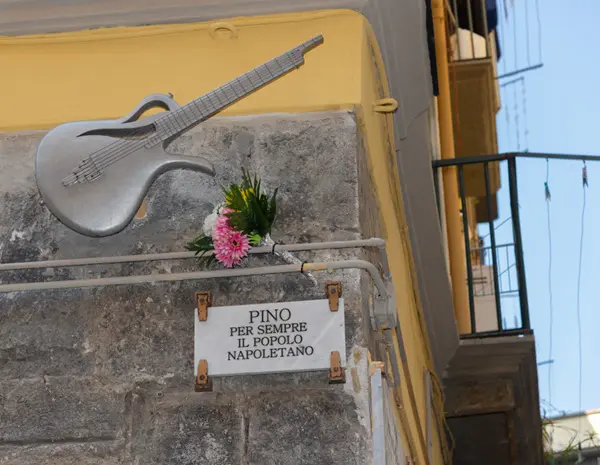 De straat waar hij woonde, de Vicoletto Donnalbina, werd na zijn dood in 2015 omgedoopt tot de Via Pino Daniele. Aan de gevel herinnert een elektrische gitaar aan zijn muzikale genialiteit, net als zijn muziek die je regelmatig vanuit een bar hoort schallen.