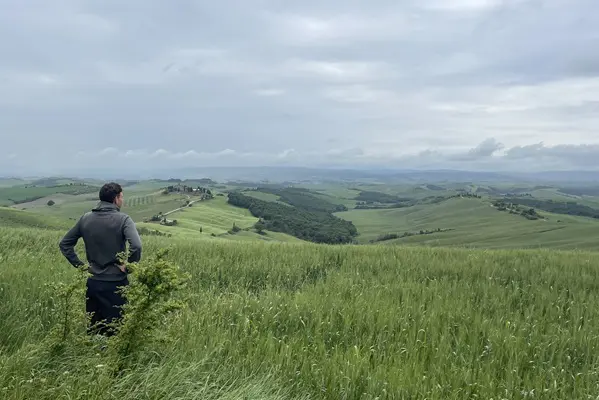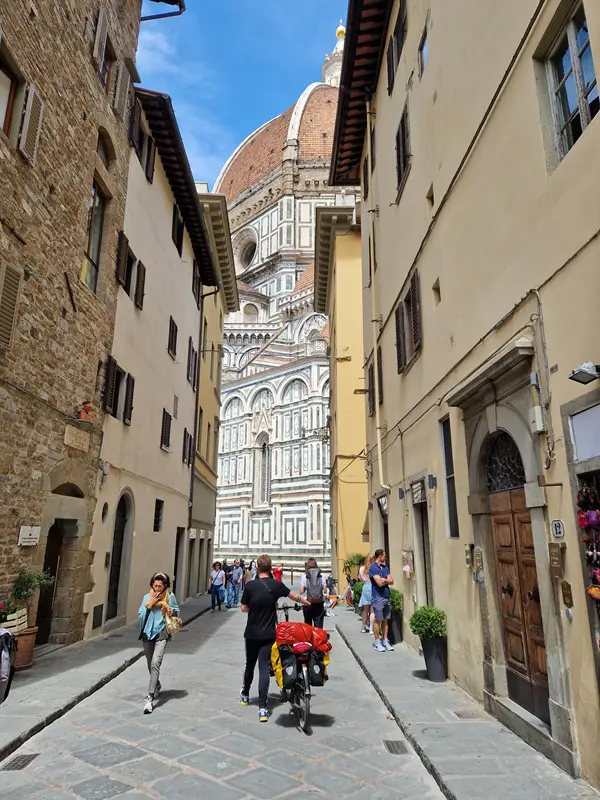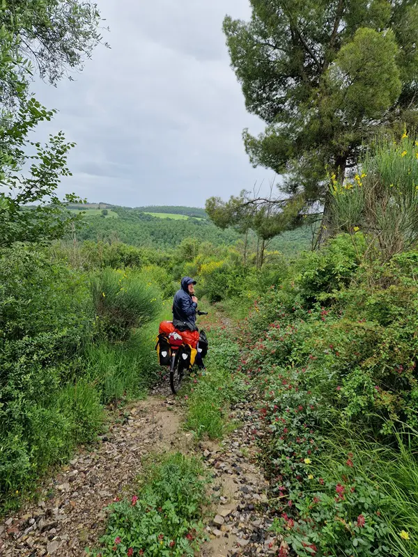 Onze eerste B&B lag in Toscane. Het zwaarste deel van de reis: heuvels, regen, nog meer heuvels. Maar ook het mooiste. In de Val d’Orcia voelde het alsof we door een schilderij fietsten. Alsof de wereld daar net iets te mooi is ingesteld.
