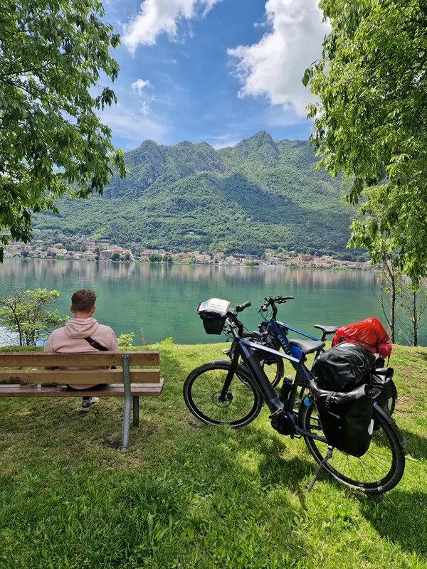 We kwamen binnen bij Chiavenna. Als je daar ooit bent geweest, weet je dat het iets magisch heeft. Chiavenna bestaat uit bergen, straatjes en water. En uit mensen die geen idee hadden dat wij net uit Nederland waren komen fietsen.