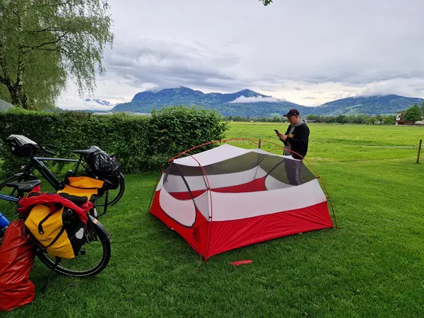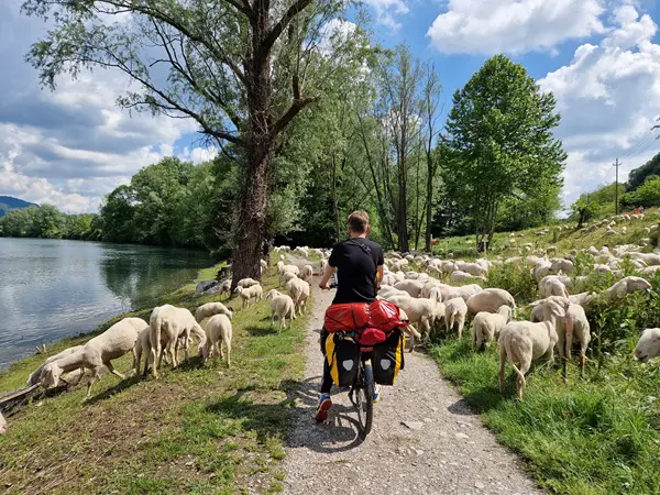 En toen gebeurde het: we fietsten Italië binnen. Dat merkten we aan twee dingen: de plaatsnaamborden waren ineens Italiaans en de wegen werden slechter. Verder niets feestelijks. Gewoon twee natgeregende mensen met fietstassen die concludeerden: oké, we zijn er.