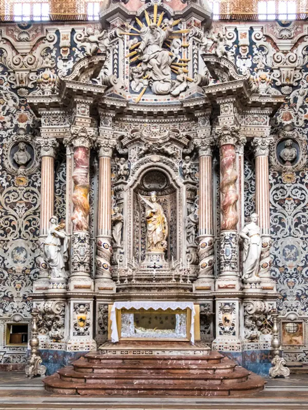 Stap na je bezoek aan het klooster ook zeker even de kerk gewijd aan de heilige Catharina van Alexandrië binnen, om de barokke overdaad aan details te bewonderen. Kun je bijvoorbeeld het verhaal van Jonas en de walvis en het offer van Isaak vinden?
