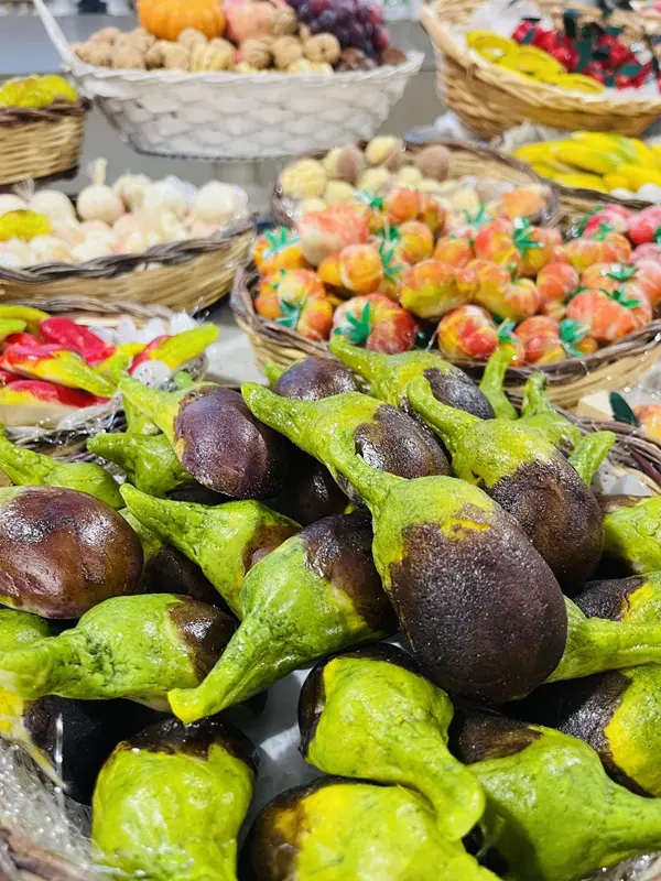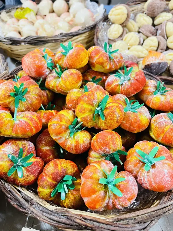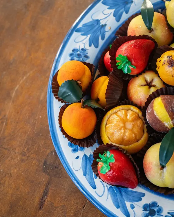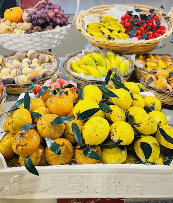 Wat je ook moet proeven, is frutta martorana, fruit gemaakt van marsepein. Volgens de legende werd dit fruit voor het eerst gemaakt in het klooster La Martorana in Palermo, eveneens aan het Piazza Bellini.