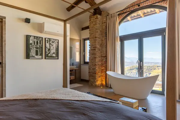 Ieder appartement heeft een comfortabel hemelbed, airconditioning, een regendouche én een ligbad met uitzicht. Bovendien is er voor elk appartement een eigen terras met luxe loungeset en eettafel, zodat je zowel binnen als buiten van het prachtige Piemontese panorama kunt genieten.