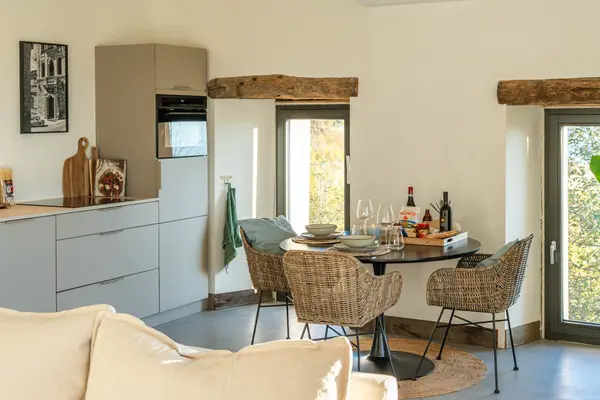 De volledig ingerichte keuken van elk appartement beschikt over een inductiekookplaat, combioven, vaatwasser, koelvriescombinatie, koffieapparaat Lavazza-koffie, melkopschuimer, broodrooster, citruspers, keukenlinnen en alle kookgerief, servies en glaswerk dat je je maar kunt wensen. Ed en Jacqueline zorgen bovendien voor een gevulde koelkast op de dag van aankomst, zodat je na een lange reis niet meteen boodschappen hoeft te doen.