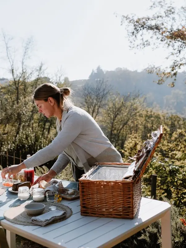 Elke ochtend staat er een goedgevulde picknickmand voor je deur, met allerlei lekkers voor het ontbijt. Sara bakt zelf graag iets zoets, dat ze aanvult met lekkernijen van kleine producenten in de buurt.