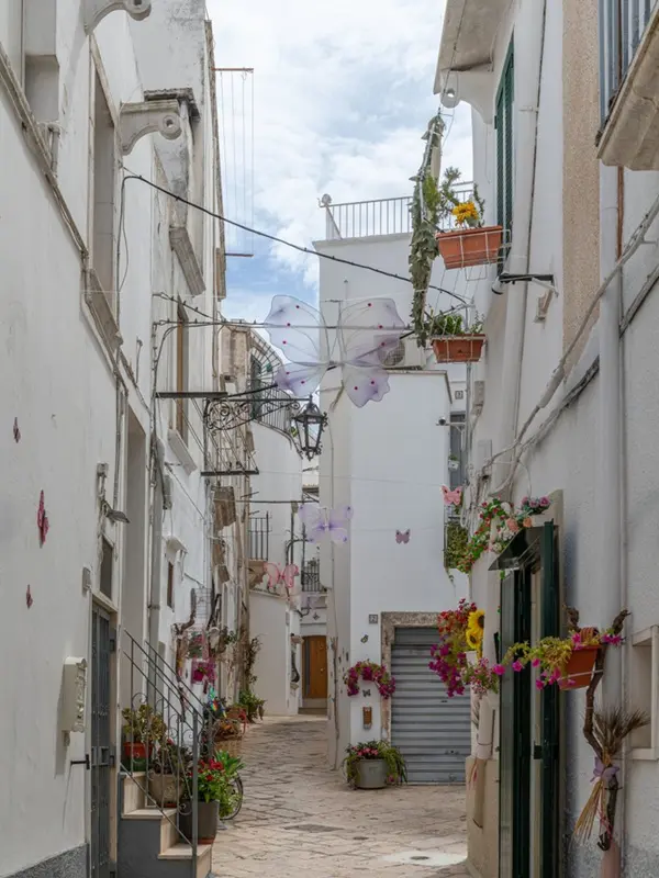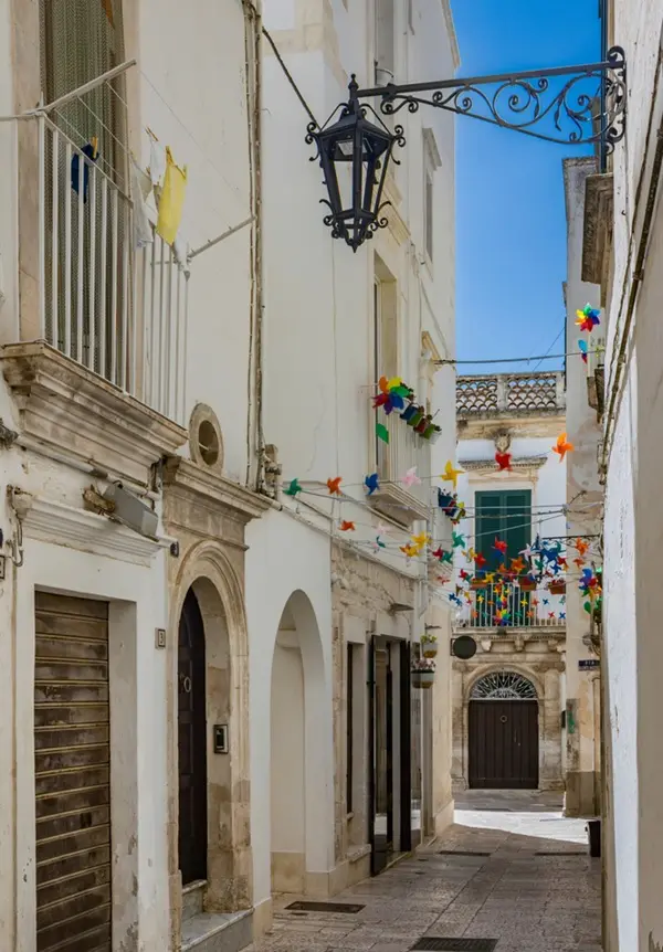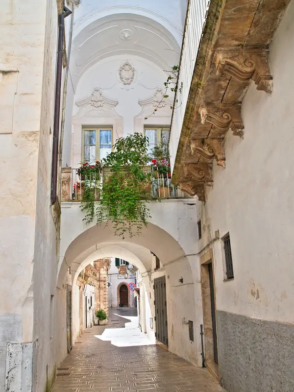 Zodra je door de Porta Santo Stefano het historisch centrum van dit plaatsje binnenwandelt, ademen de straten net als in Lecce vooral barok, met overdadig versierde palazzi, en witte huizen met kleurrijke details.