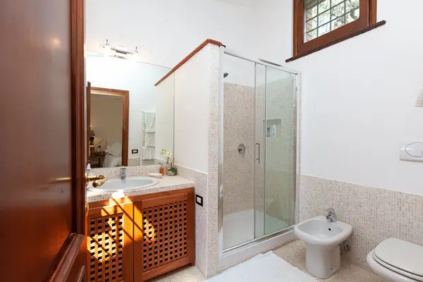 Daarnaast zijn er twee slaapkamers met een tweepersoonsbed en een slaapkamer met een éénpersoonsbed, beide met een eigen badkamer, eentje met een hydromassage-bad en eentje met een douche.