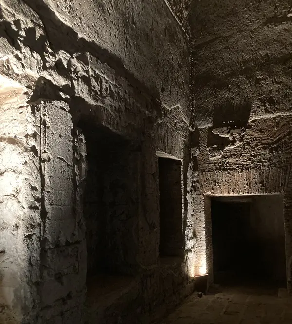 Sommigen krasten ook hun initialen of hun hele naam op de muren. Onder hen is ook de Nederlandse schilder Maarten van Heemskerck. Nu zitten die letters heel hoog, omdat het lang heeft geduurd voordat de zalen uitgegraven waren.