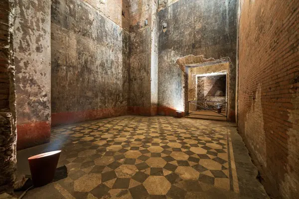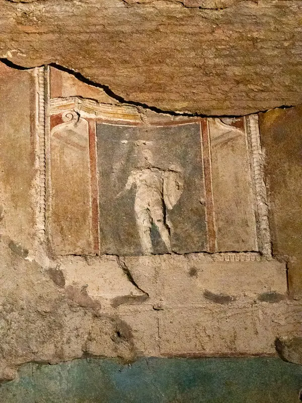 Die kale muren zijn er niet voor niets. Na de zelfmoord van Nero (hij was keizer van 54 tot 68) wilden zijn opvolgers, die uit een andere familie kwamen, de herinnering aan Nero zoveel mogelijk uitwissen.