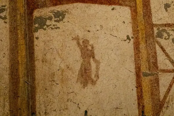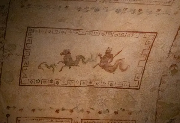 Op de wanden prijkten ook allerlei grillige figuren die grottesche werden genoemd. In eerste instantie werd de zaal waarin de herder terechtkwam namelijk aangezien voor een grot. Ze zijn lange tijd in de mode geweest, zoals nog altijd te zien is in Villa del Colle del Cardinale bij Perugia en in het Castello di Torrechiara bij Parma.