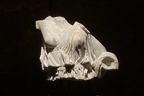 Als je wat dieper in het paleis bent gekomen, is er meer te zien. In sommige zalen zijn kunstschatten uitgelicht die hier zijn gevonden, zoals een beeld van Terpsichore (muze van dans en poëzie), een prachtige schaal, een borstbeeld van Thalia (de muze van de komedie) en resten van zuilen.