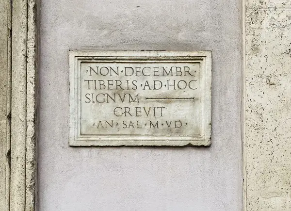 Let ook op de plaquette aan de muur die herinnert aan een hevige overstroming van de Tiber, in 1495.