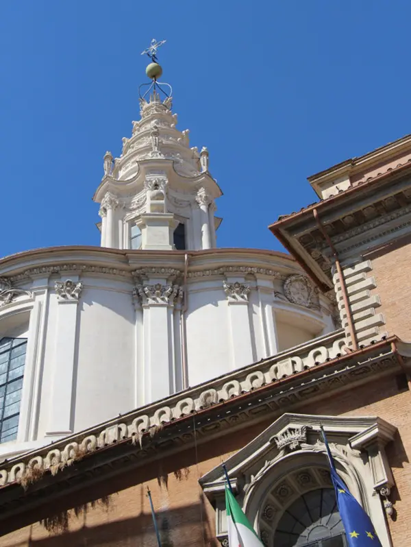 Sommige wetenschappers zagen er eerder een grote bij in, het symbool van de Barberini’s. Er zijn natuurlijk sowieso genoeg verwijzingen naar pausen, met name naar Alexander VII Chigi, die Borromini na de dood van Urbanus VIII door liet werken aan de kerk en wiens familiewapen – zes bergjes met daarboven een ster – vaak te zien is in en om de Sant’Ivo alla Sapienza.