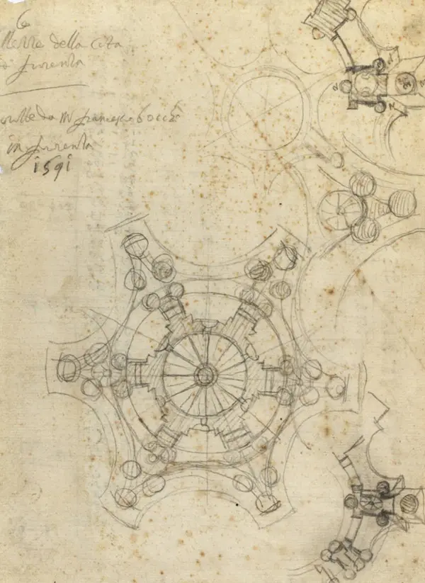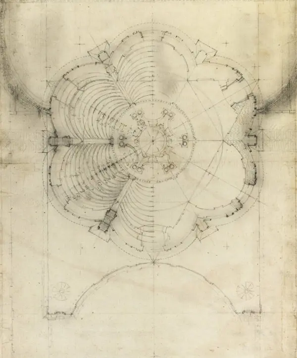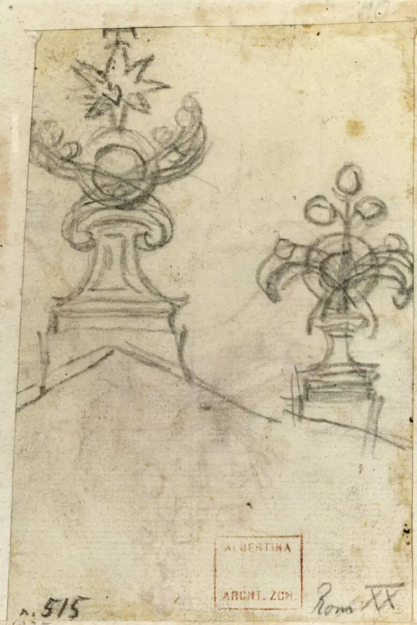 Via deze link zie je een aantal schetsen die Borromini maakte voor de Sant’Ivo alla Sapienza, in het bijzonder voor de lantaarn.