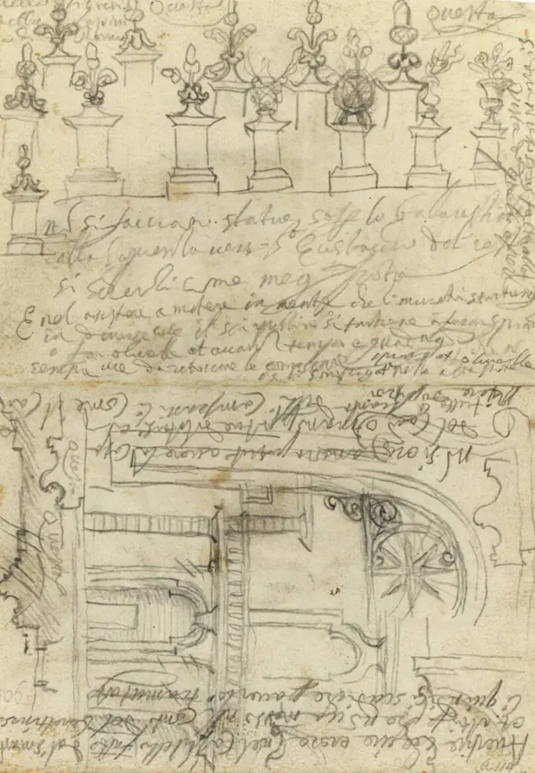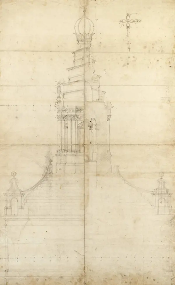 Borromini tekende het ontwerp voor de fraaie bibliotheek, waarvoor schetsen zijn teruggevonden die allerlei details onthullen, zoals de boekenplanken.