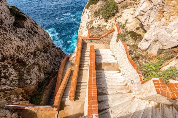 Je kunt de grot per boot bereiken maar te voet is een leukere optie. Je loopt dan naar beneden via een trap langs de steile rotsen. De trap heeft maar liefst zeshonderdvierenvijftig treden, maar als beloning heb je al wandelend prachtig uitzicht over zee.
