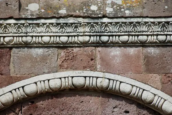 Zoals je goed kunt zien, bestaat de voorgevel uit twee lagen of niveaus. Er was ooit nog een derde niveau, maar dat is verloren gegaan, net als het bovenste deel van de toren.