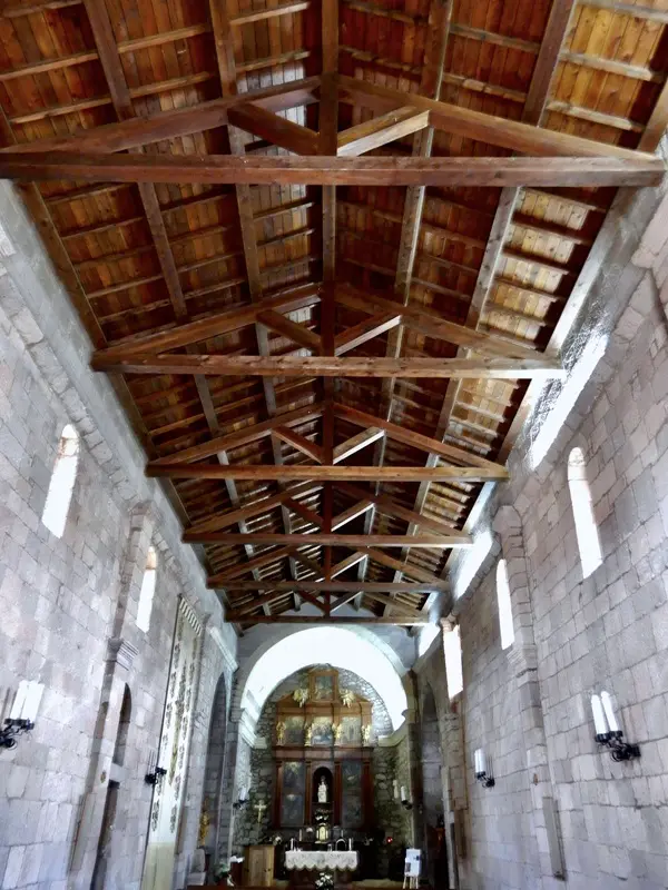 Binnen is de kerk overwegend sober, zoals het hoort in een romaans gebouw. De apsis en het priesterkoor zijn in de zeventiende eeuw getransformeerd naar de smaak van toen en dat is duidelijk te zien. Toch misstaat het niet echt, vind ik.