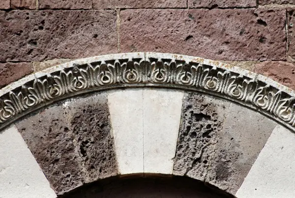 Maar het opvallendst zijn toch wel de rechthoekige decoraties met hun geometrische patronen, die tussen en binnen de bogen zijn aangebracht. En wat vind je van de rozet in het midden? Die mag toch ook best bijzonder heten.