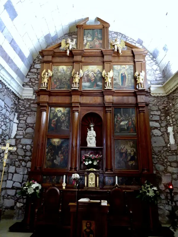 De buitenzijde, vooral de voorgevel, van de Nostra Signora vertoont duidelijke kenmerken van de Pisaans-romaanse stijl. Pisaans? Wat heeft Pisa met Sardinië te maken? Nou, best wel veel, want de republiek Pisa had lange tijd nederzettingen op het eiland, net als Genua trouwens.