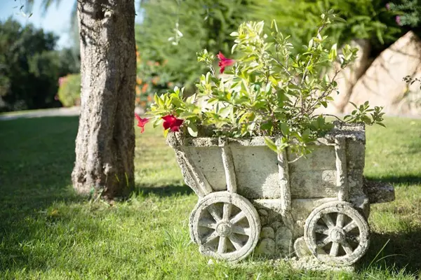 De Italiaanse eigenaar heeft een stuk grond aangekocht van maar liefst dertigduizend vierkante meter. Hij maakte er eigenhandig een paradijsje van, vol met bloemen, planten, fruitbomen en een wijngaard. Daarnaast houdt hij er verschillende dieren, waaronder een vijftigtal kippen, een paard, pony’s en schildpadden.
