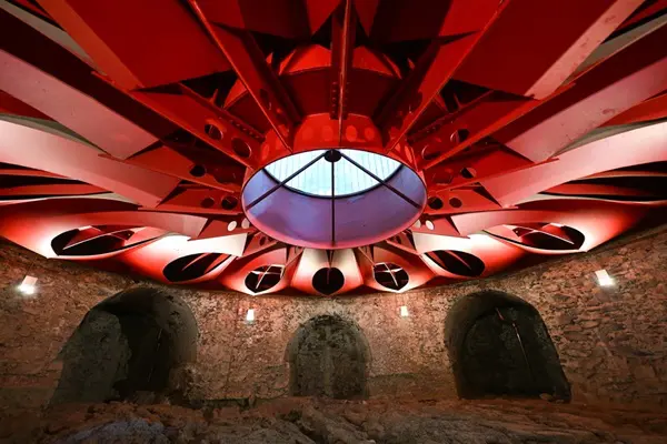 Tegenwoordig gaan oude en nieuwe architectuur hier hand in hand. In deze vroegere voorraadkamer bevindt zich nu namelijk het kloosterarchief, met veel authentieke documenten en een kleine bibliotheek, naar ontwerp van de Genuese architect Giancarlo De Carlo.