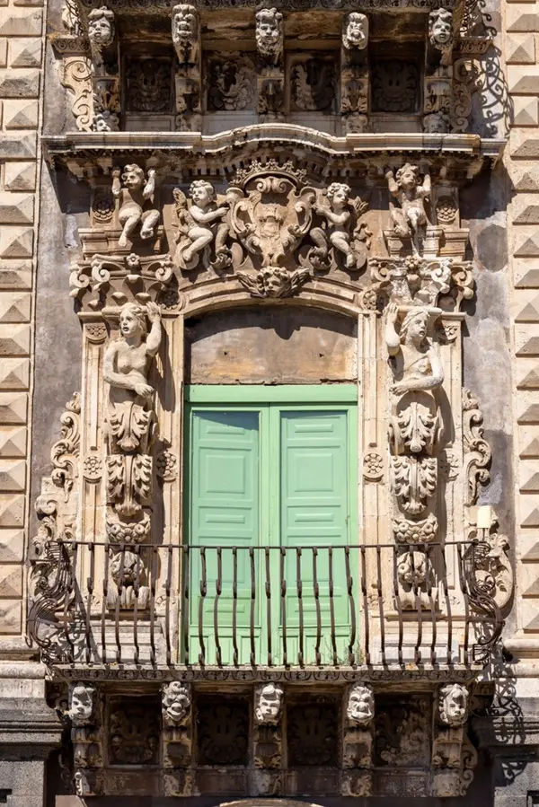 De basreliëfs zijn van de hand van Giuseppe en Gioacchino Gianforma, die zich hiervoor lieten inspireren door de levens van heiligen die verbonden waren met de Benedictijner orde en door gebeurtenissen en personen uit de stad Catania.