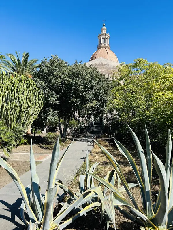 Vanaf hier zie je de koepel van de San Nicolò l’Arena, de vroegere kloosterkerk, waar we binnenkort een aparte blog aan zullen wijden.