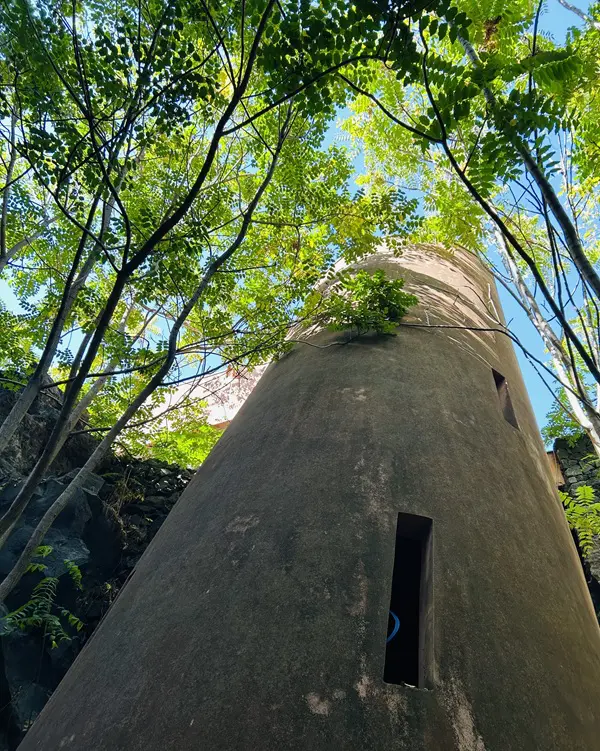 Via een bijna onzichtbare deur loodst de gids ons naar buiten, waar een enorme muur van gestolde lava oprijst. Op 8 maart 1669 ontstonden twee diepe scheuren in de Etna, waaruit lava stroomde. Er stegen rookkolommen op en de vulkaan toonde al haar kracht.