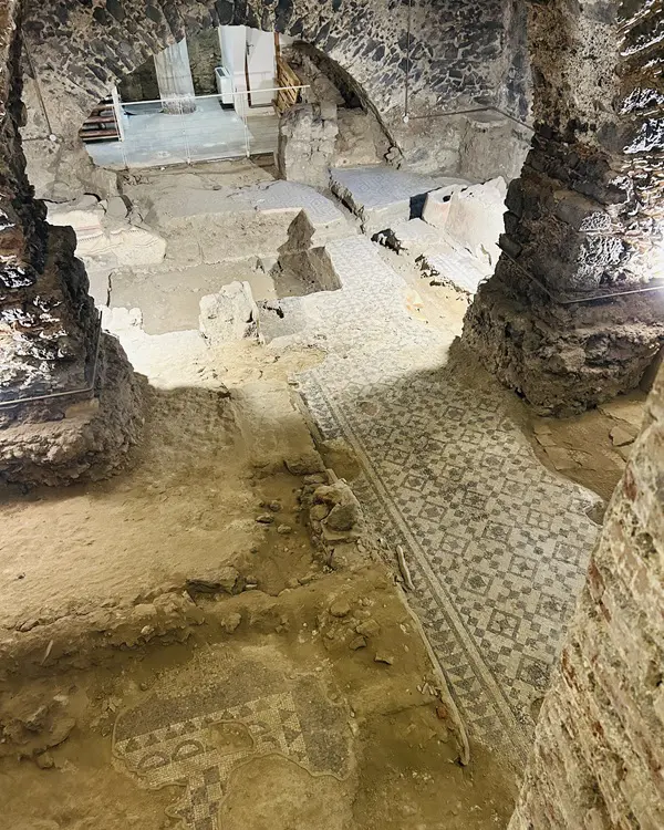 De historie gaat echter nog veel verder terug. Waar studenten nu over de boeken gebogen zitten en de monniken ooit hun voedselvoorraden bewaarden, bouwden de Romeinen ooit twee luxe woonhuizen, waarvan je onder meer een deel van de mozaïekvloer en fragmenten van fresco’s nog kunt bewonderen.