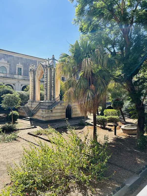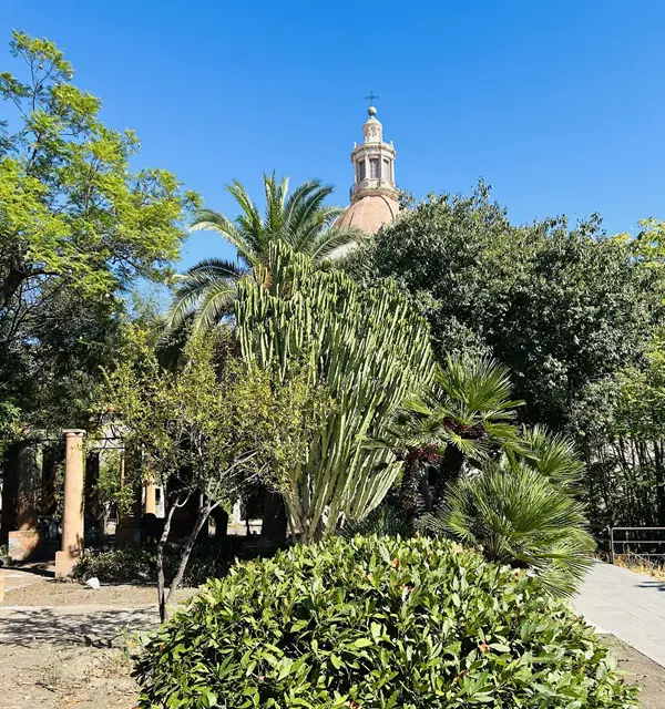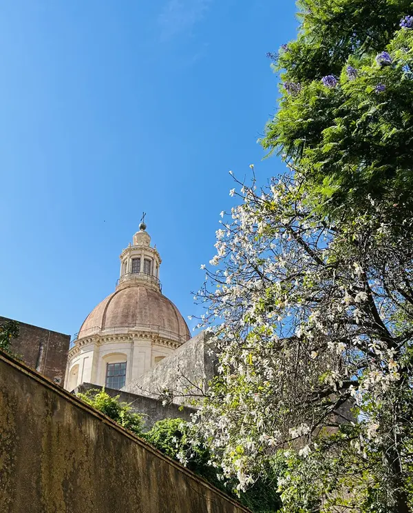 Vanaf hier zie je de koepel van de San Nicolò l’Arena, de vroegere kloosterkerk, waar we binnenkort een aparte blog aan zullen wijden.