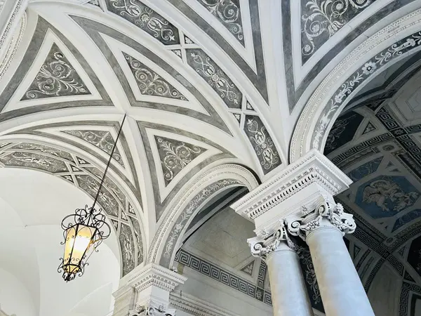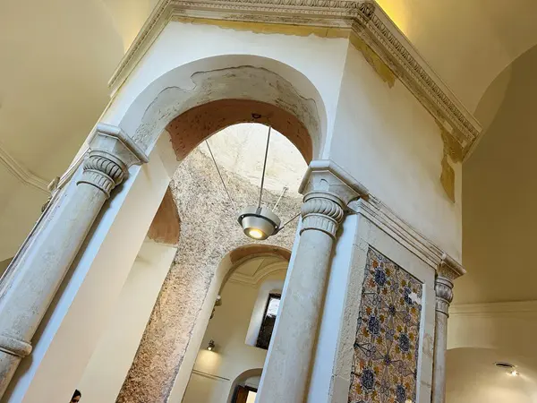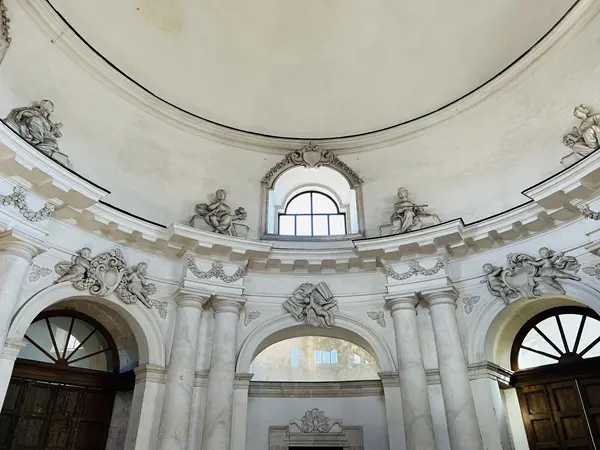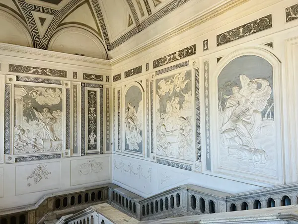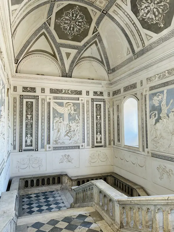Eenmaal binnen word je meteen overdonderd door de scalone monumentale, de monumentale trappartij, met neoklassiek stucwerk van de hand van Girolamo Palazzotto, die zich hierbij liet inspireren door de trappen in koninklijke paleizen, zoals het Palazzo Reale in Caserta.