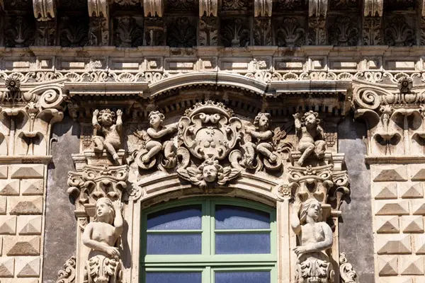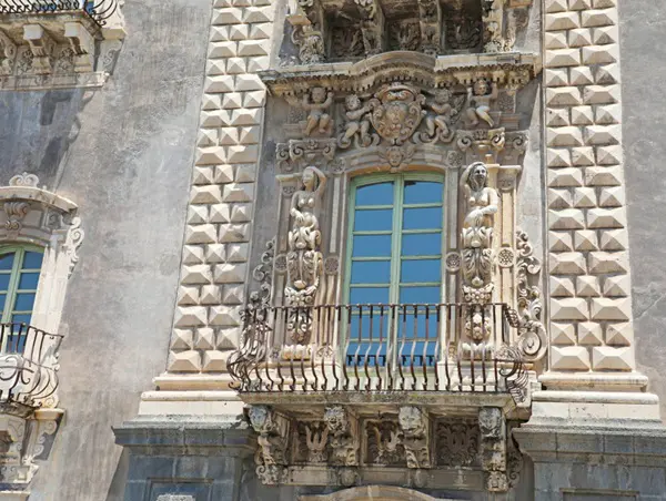 De basreliëfs zijn van de hand van Giuseppe en Gioacchino Gianforma, die zich hiervoor lieten inspireren door de levens van heiligen die verbonden waren met de Benedictijner orde en door gebeurtenissen en personen uit de stad Catania.
