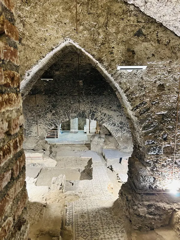 De historie gaat echter nog veel verder terug. Waar studenten nu over de boeken gebogen zitten en de monniken ooit hun voedselvoorraden bewaarden, bouwden de Romeinen ooit twee luxe woonhuizen, waarvan je onder meer een deel van de mozaïekvloer en fragmenten van fresco’s nog kunt bewonderen.