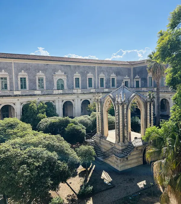 Saskia nam in oktober deel aan een rondleiding en neemt je mee naar deze fascinerende plek vol historie in Catania, die op de Werelderfgoedlijst van Unesco prijkt. Ze laat je onder meer de kloostertuinen, de oude kloosterkeuken, de bibliotheek en de twee Romeinse domus binnen de muren van het klooster zien.