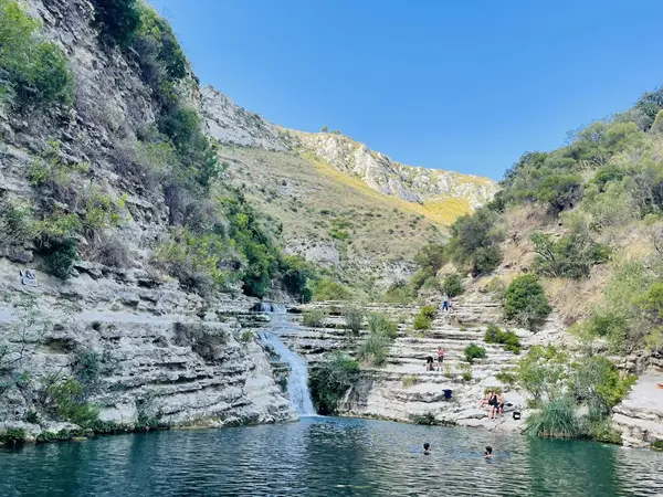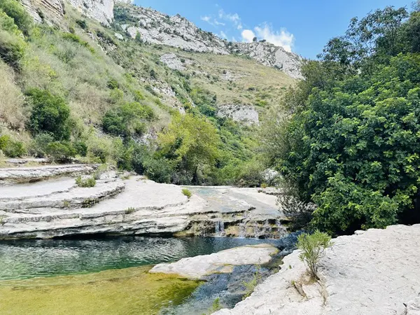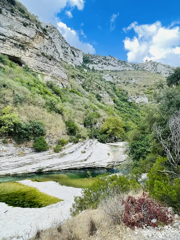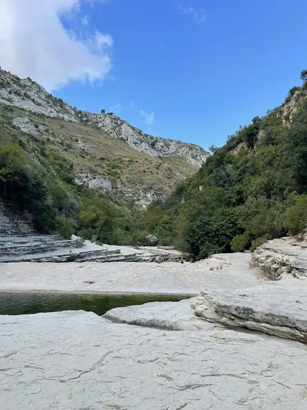 Beneden in de kloof sta je in een paradijselijk landschap, met helder, smaragdgroen rivierwater dat her en der kleine watervallen en meertjes vormt. De Cassibile-rivier heeft in de loop van duizenden jaren diepe groeven uitgesleten in de rotsen, wat zorgt voor een unieke gelaagdheid en verschillende niveaus in het kalksteen.