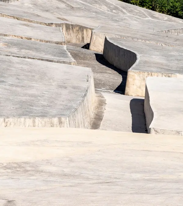 In Burri’s kunstwerk is een historische herinnering vastgelegd, waardoor het ook een confronterende en kwetsbare plek is, omarmd door de natuur. Een van de locals vertelt ons dat het werk lange tijd in beslag heeft genomen, van 1985 tot 1989.