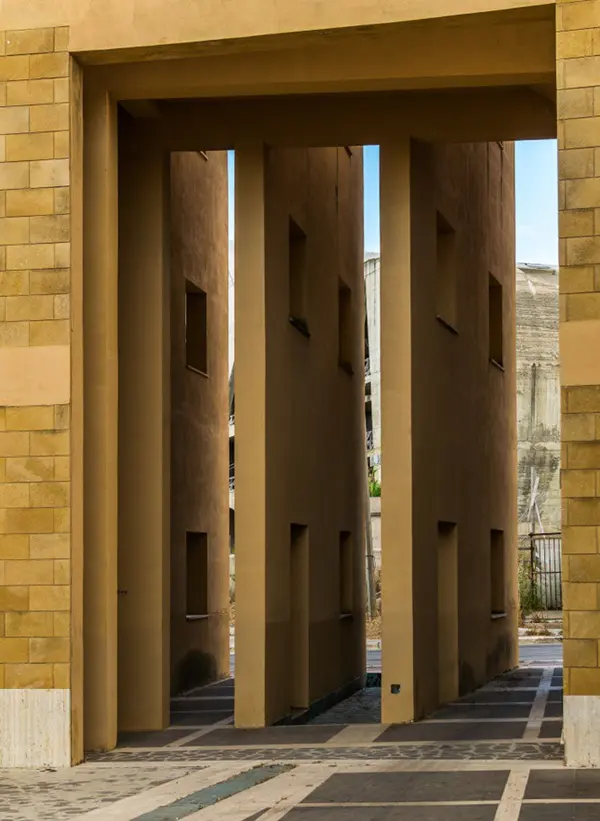 Een ander kunstwerk dat je niet mag overslaan, is Sistema delle Piazze van Franco Purini en Laura Thermes (1990), een reeks van opeenvolgende pleinen die er allemaal hetzelfde uit zien. Verwacht geen levendig Italiaans piazza zoals in veel andere steden en dorpen, maar ondanks de vervreemdende aanblik is dit pleinenkwartet de moeite van het bekijken waard.
