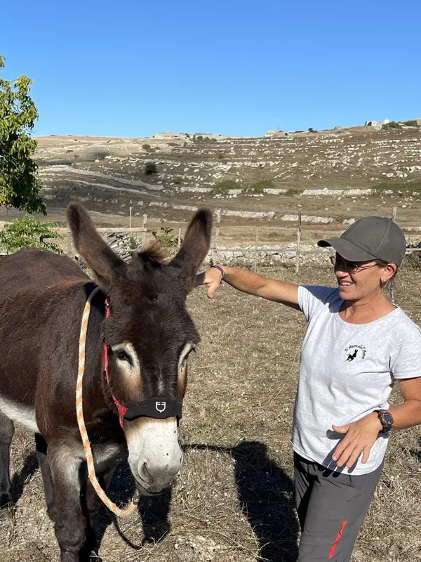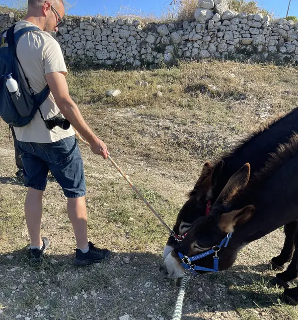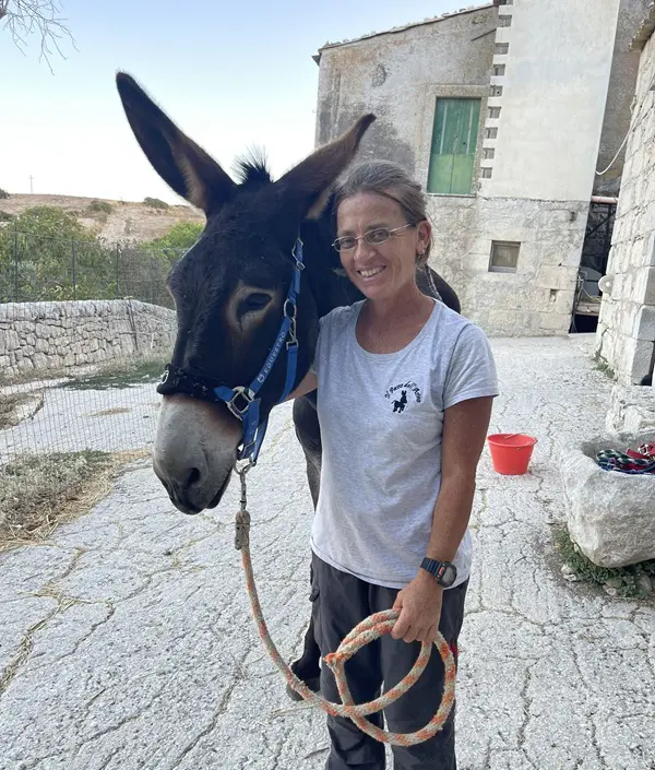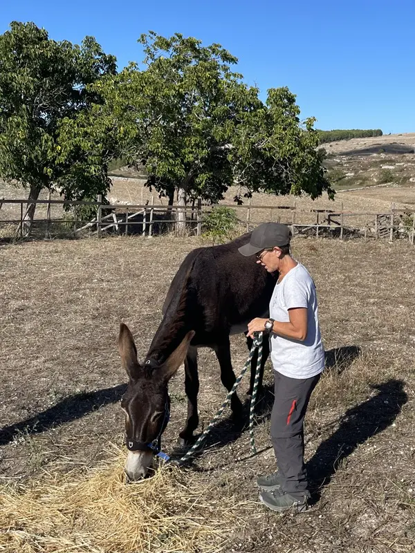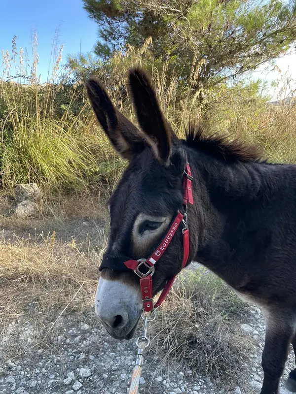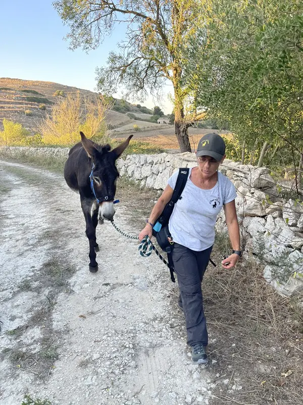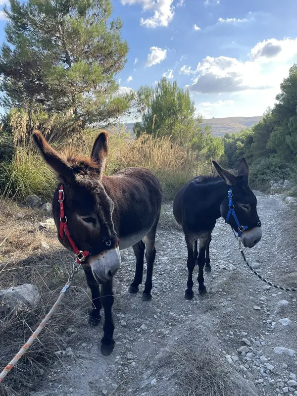 De zusjes Stella en Marina zijn twee van Anna’s asini ragusani (een ezelras dat voorkomt in Ragusa en omstreken) die vandaag mee op pad mogen. Ze zijn gewend aan mensen en, belangrijker nog, ook aan het wandelen.