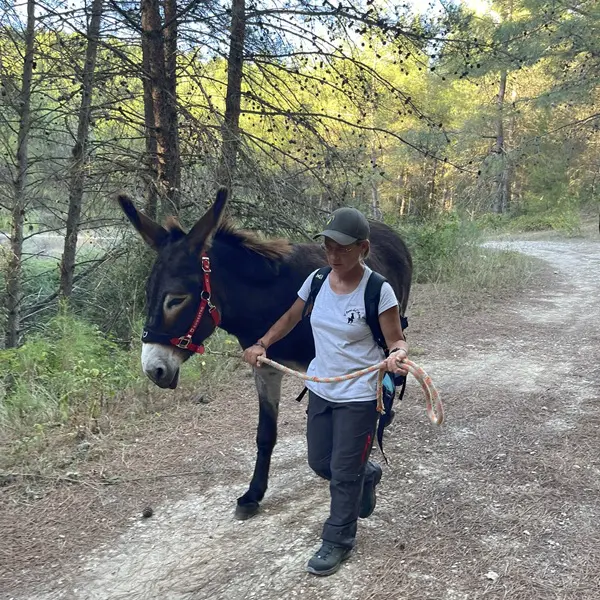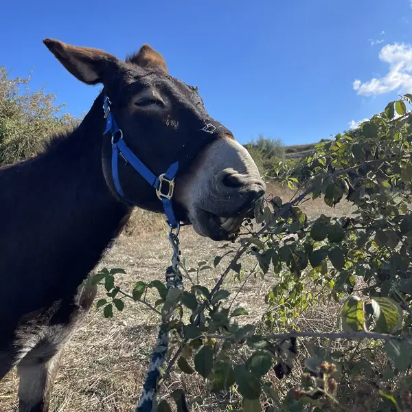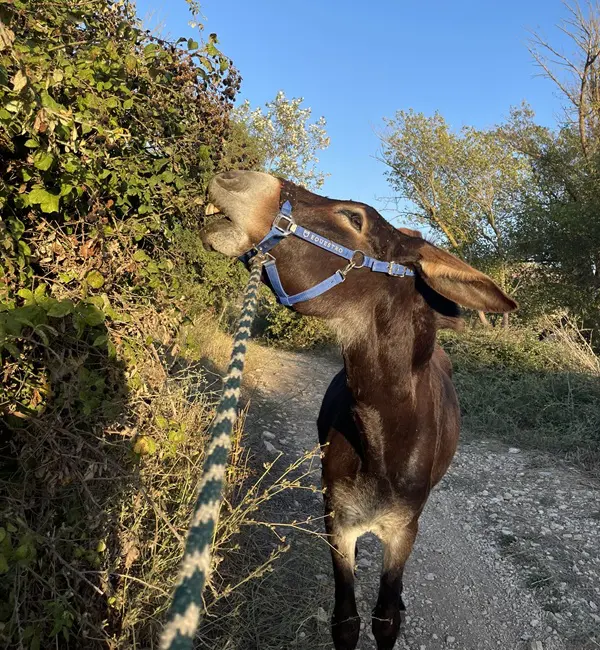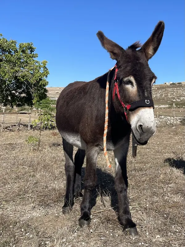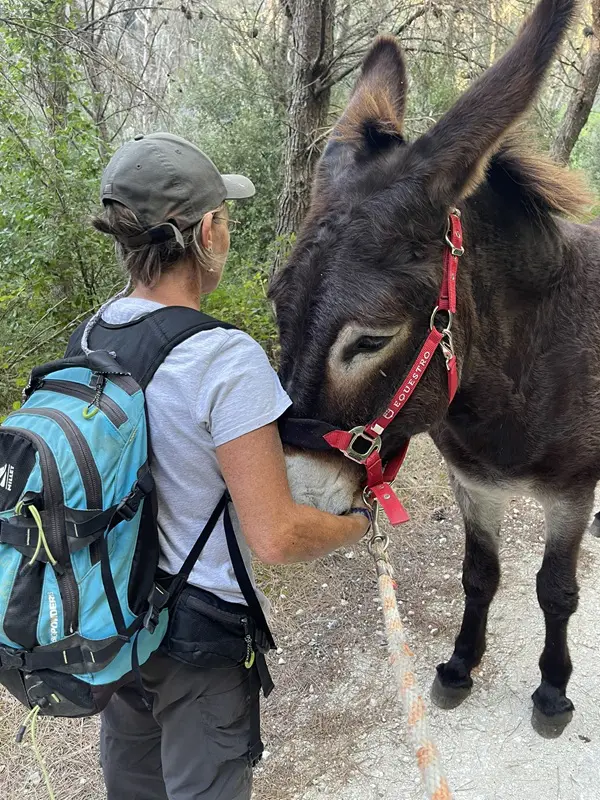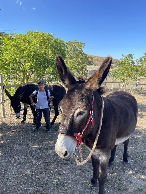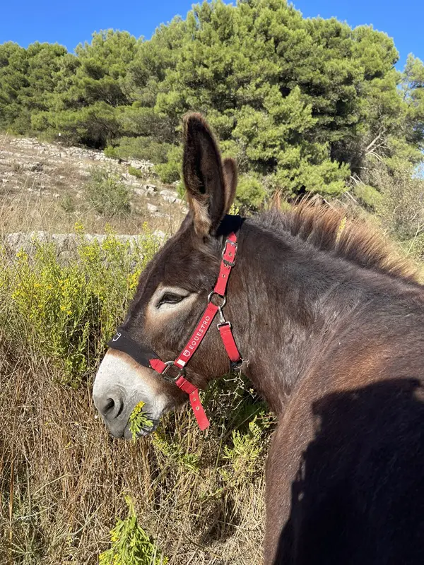 De zusjes Stella en Marina zijn twee van Anna’s asini ragusani (een ezelras dat voorkomt in Ragusa en omstreken) die vandaag mee op pad mogen. Ze zijn gewend aan mensen en, belangrijker nog, ook aan het wandelen.