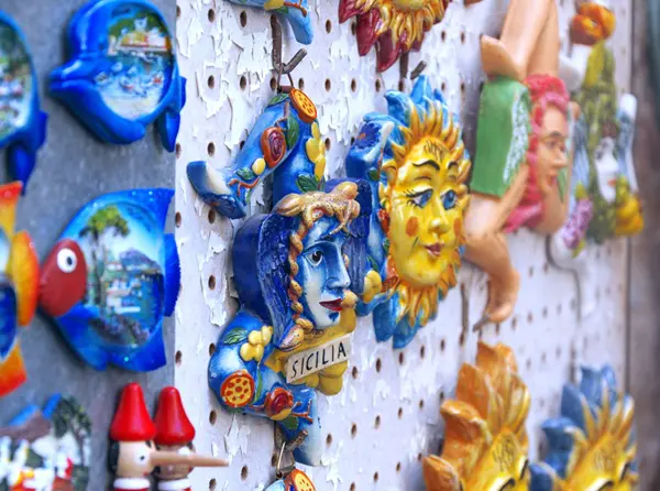 Als de taxi wegrijdt, zie ik op de achterbumper de inmiddels bekende driebenige gorgo – die langzaam uit het zicht verdwijnt. Nog geen vierentwintig uur later heb ik een mooie collectie trinacria’s verzameld. Natuurlijk gaat er ook een mee naar huis als souvenir!’